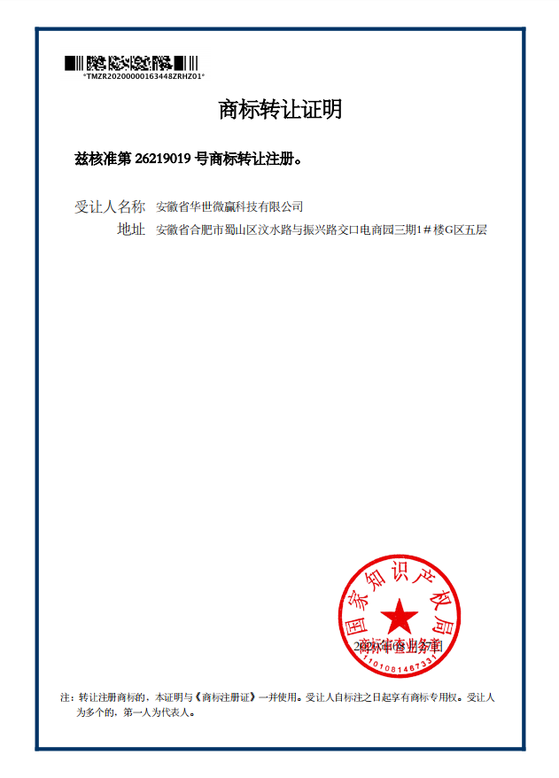 微贏專利憑證(點擊放大觀看)
